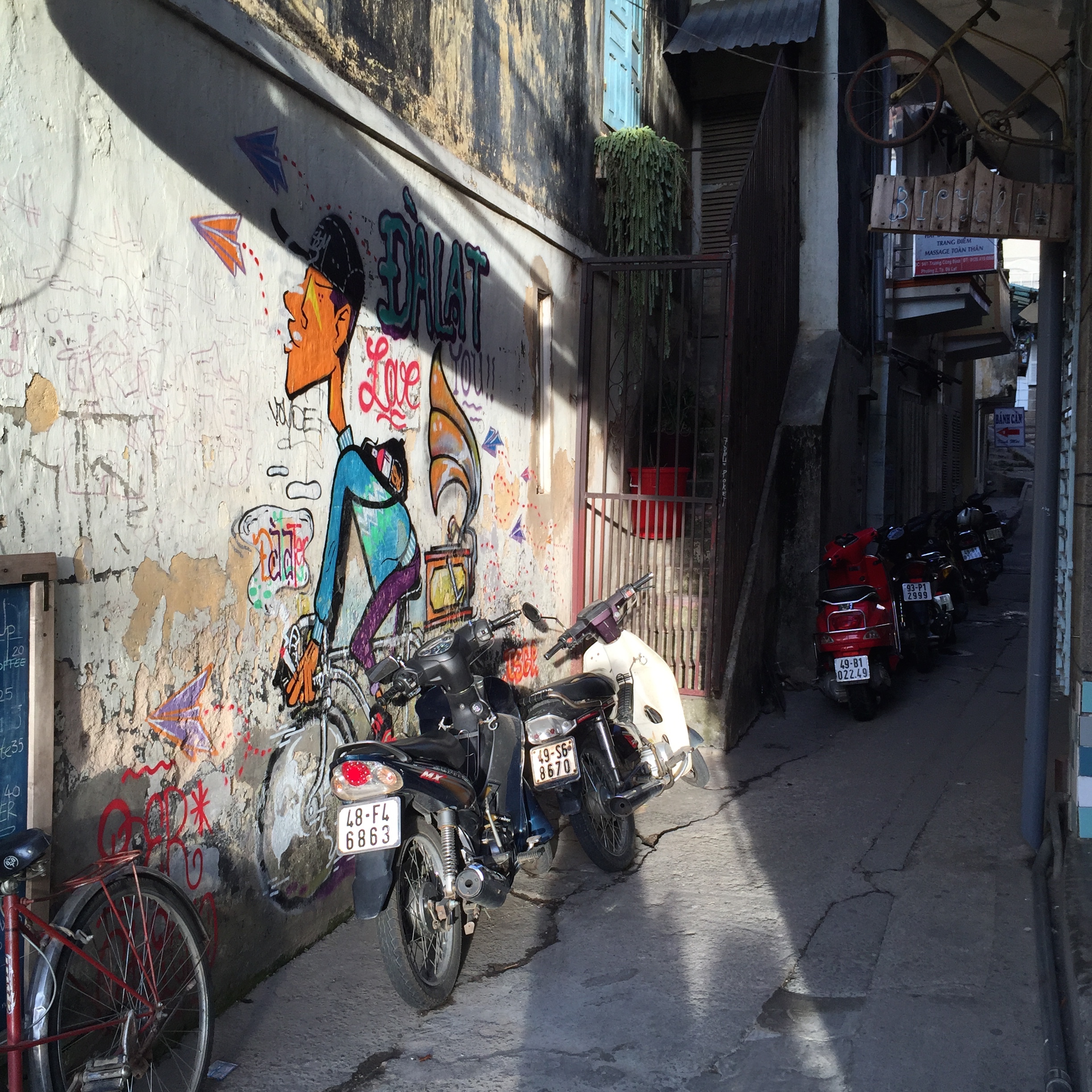 In truth Dalat had much more Vietnamese tourism than it had foreigners like us. That may have been down to the multiple holidays, I don’t know. Just like in western cities like Melbourne or Vancouver the interaction between asian and western cultures brings about its own curious style. I love the products of this. In the hands of the young happening folks of Dalat there were a small number of little shops and cafes that would grace any city.