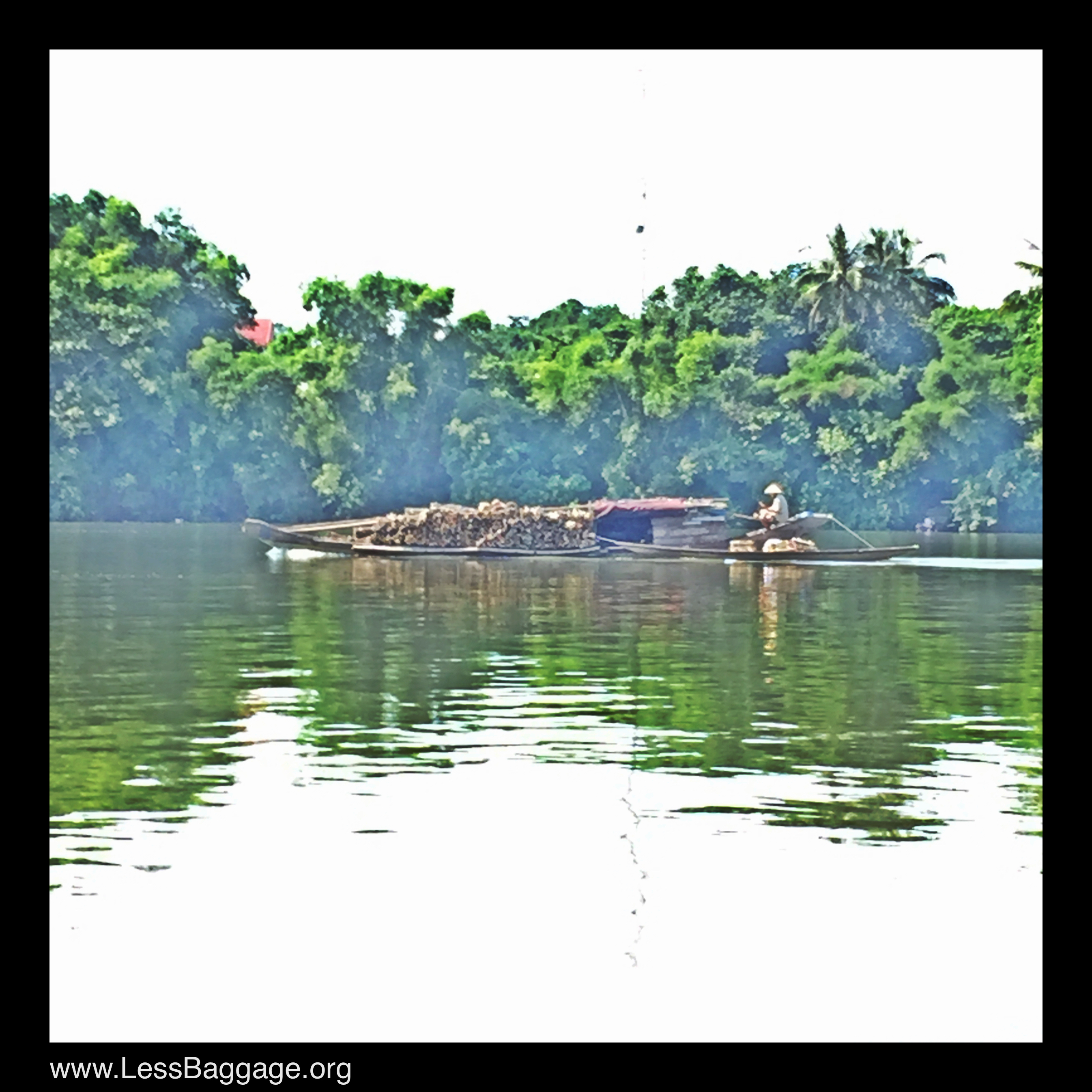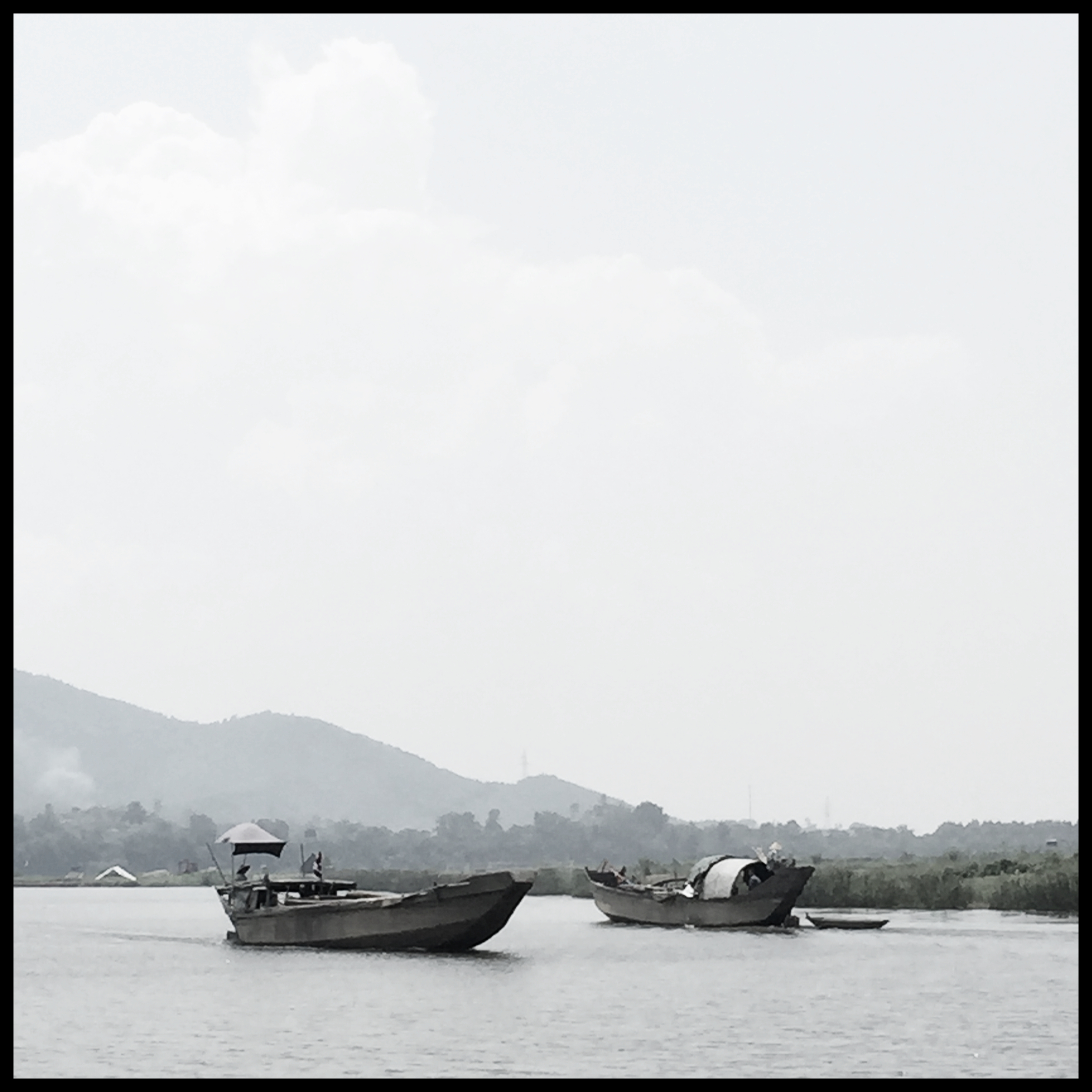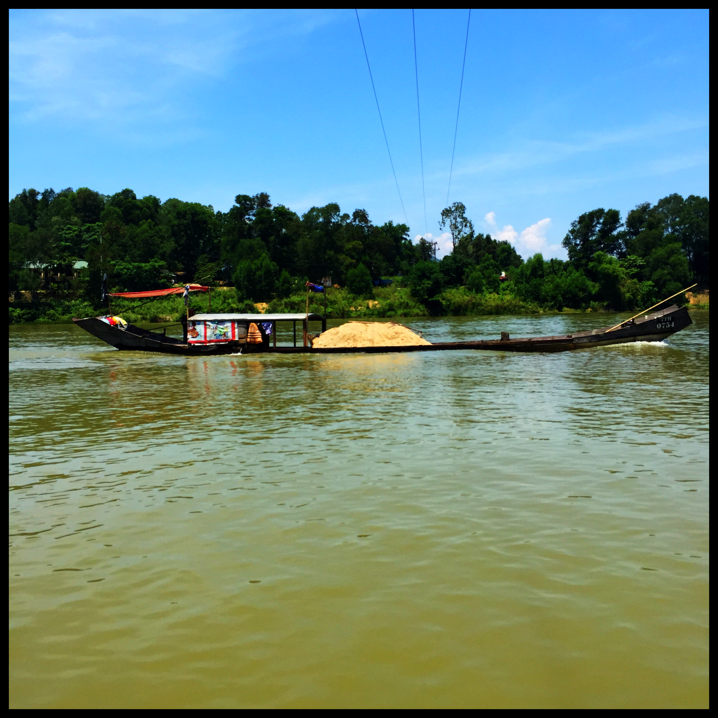 I was on the Perfume River. It was hot. The sky was dotted with white clouds and the water reflected the green river banks and the blue and white skyscape. I was happy. Aoife was happy.